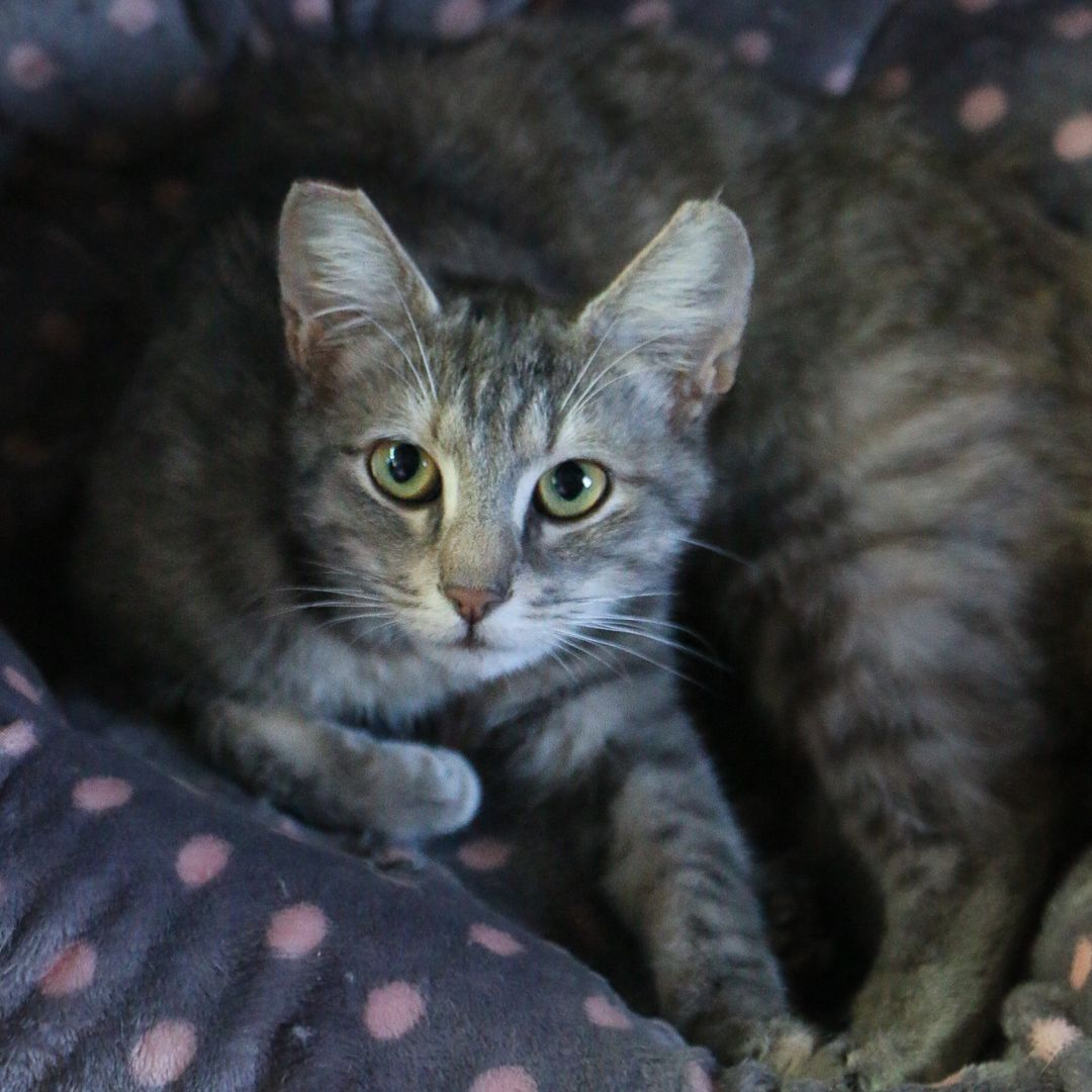Liraven is a vision of quiet beauty a delicate, grey‐tabby girl with a touch of the mystical about her. Her name suits her perfectly: Raven for the mysterious, wise bird of transformation, and Li for that elegant French flair that hints at her refined and gentle spirit.