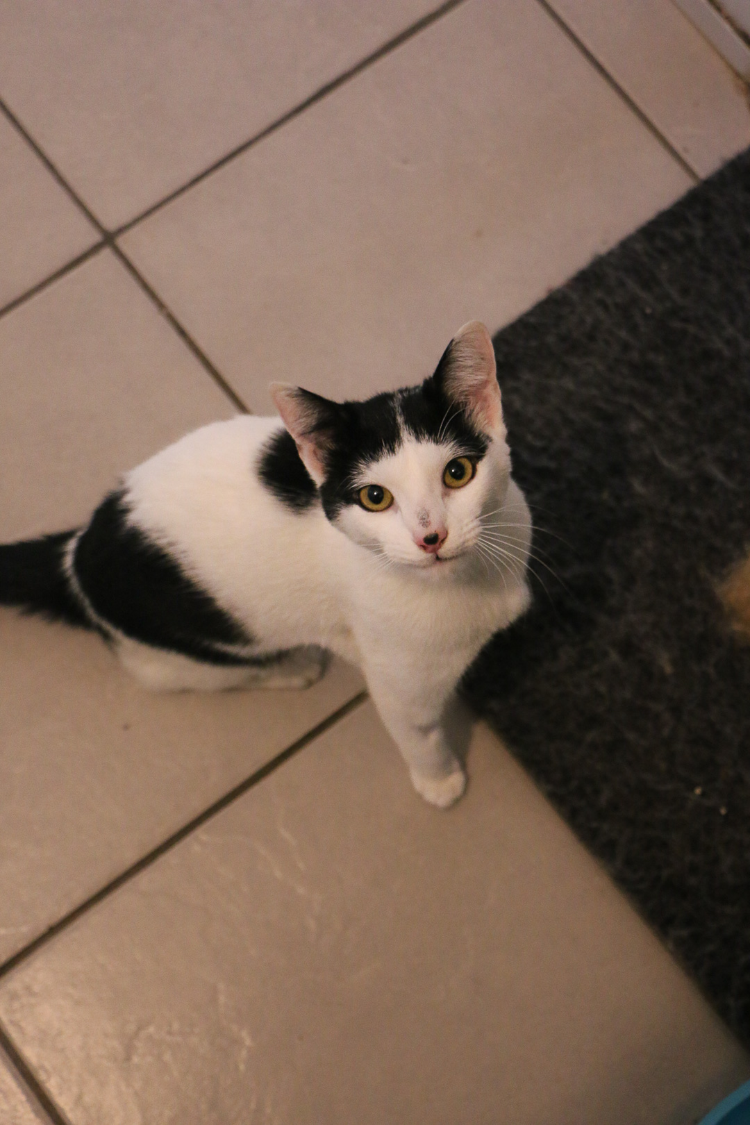 Some cats wear their personality in their eyes… Lucy wears hers in her hairdo. This young black-and-white beauty has the most unique markings a perfect little fringe and a parting down the middle. It’s as if she styles herself each morning before greeting the world. Lucy once had a home, so she knows the comforts of soft beds, sunbeams through the window, and the joy of curling up next to her person.