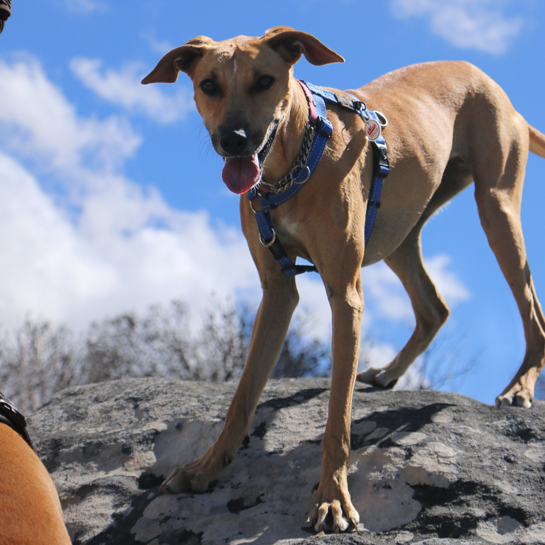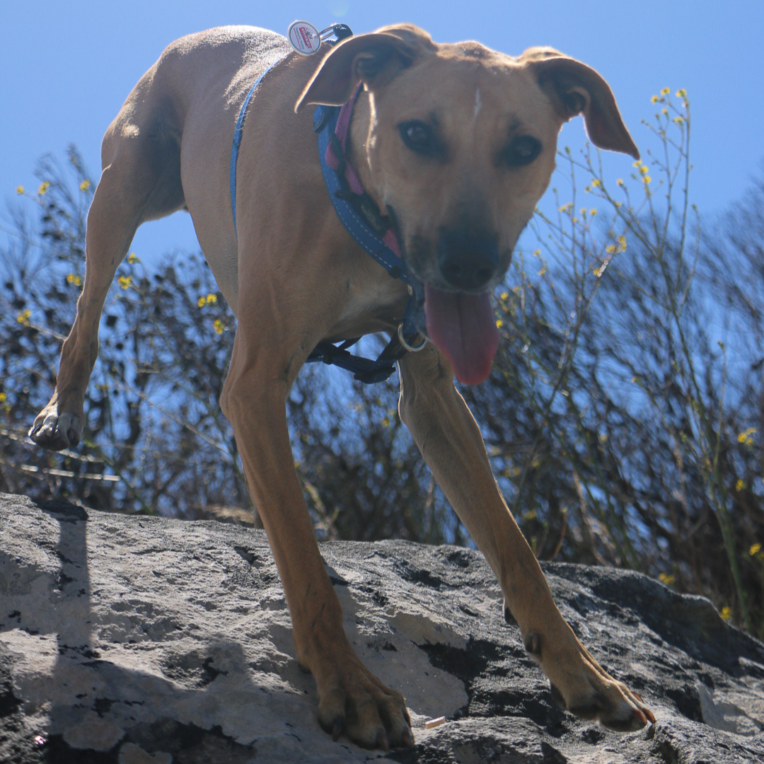 Sara needs a lot of space to stretch her gangly legs, and her kangaroo-like gait will have you giggling. If given free reign in an open field she’ll soak up all that is magical in the world with puppy-like joy. After chasing imaginary dragons above and charging castle walls ahead all she needs is a good cuddle. If you’re willing to share the secret recipe for unconditional love, adopt Sara today – it wouldn’t take her long to lap it up.